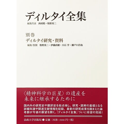 ディルタイが哲学や人文科学の歴史にもたらした革新とはいかなるものだったか。現代の読者はそこから何を生み出すことができるのか。今日にいたる国内外の研究史や翻訳史を総点検し、今後の研究・読解の基礎となる年譜や文献情報を収録するとともに、最新視点から主要な論点を扱う論考群を掲載。構想段階から四半世紀、刊行開始から20年以上の時を経て、『ディルタイ全集』ついに待望の完結!