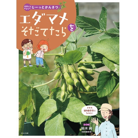 エダマメを自分で育てて、観察してみよう! ふだん食べている野菜も、育てて観察してみると、植物であること、生きているいのちであることが見えてくる。どうなっているのかな? とさわってみたり、あれこれ知りたくなってくる。注目の植物観察家、鈴木純さんが、小学校2年生の生活科で扱う野菜を栽培し観察しました。植物観察がおもしろくなる、「観察のまなざし」をそだてるシリーズ。