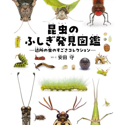 この本では生きもの写真家の安田守さんの視点で集められた、身近な昆虫たちのすごいポイント・おもしろいポイントを「赤ちゃん」「顔」「ふん」「ぬけがら」など、さまざまなテーマごとにふんだんに紹介しています。虫が一生の間に出した「ふん」、産んだ「卵」などから、虫の一生に近づく試み、題して「一生集めプロジェクト」も必見です。