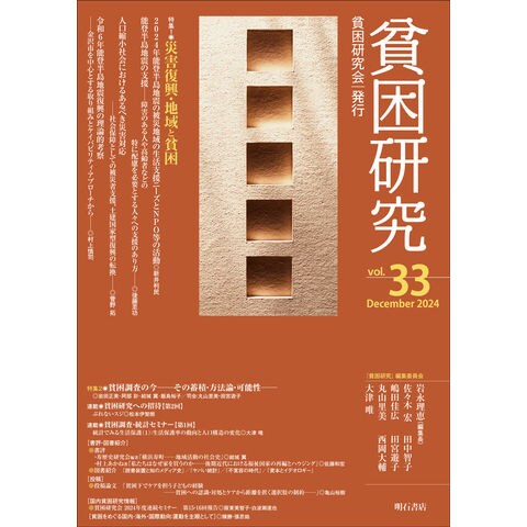 日本における貧困研究の深化・発展、国内外の研究者の交流をはかり、貧困問題をさまざまな人々に伝えていく、日本初の貧困研究専門誌。特集1「災害復興・地域と貧困」、特集2「貧困調査の今――その蓄積・方法論・可能性」。