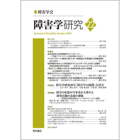 特集Ⅰ:障害学研究20号『障害学の展開』合評会、特集Ⅱ:障害や疾患の当事者が主導する研究活動の意義や課題――参加型自閉症研究とニューロダイバーシティ運動。そのほか、論文、エッセイ、書評、ブックガイドを掲載。