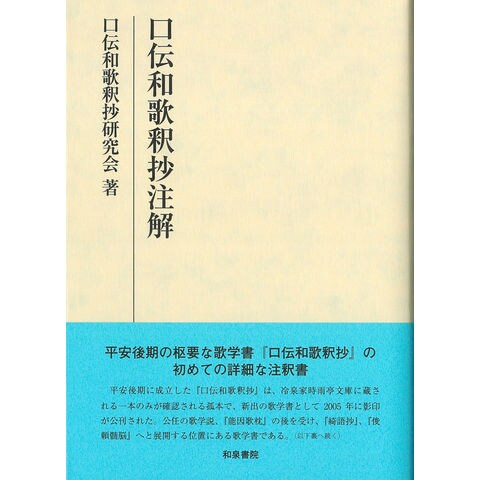 平安後期の枢要な歌学書であり、長くその存在が知られなかった『口伝和歌釈抄』の正確な本文を提示し、平安末期から鎌倉初期の歌学史に立脚した詳細な注をほどこした初めての注釈書。併せて『口伝和歌釈抄』と『隆源口伝』の対照本文、『別本童蒙抄』本文、及び和歌索引を付した。