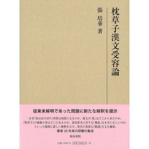 著者が二十年近く研鑽を積み、『枕草子』と漢文との関係について考案した研究書。まず、代表的な『枕草子』の章段において漢語表現や漢文受容に焦点を当て、詩、賦、伝奇、類書などの中国古典文学のジャンルを取り入れ、寓意や暗喩といった手法を解析し、従来未解明であった問題に新たな解釈を提示した。また、『枕草子』と『白氏文集』を中心に考察し、『源氏物語』に比べて『枕草子』には圧倒的に感傷詩が多いことを明らかにし、その背後にある感傷の美を浮き彫りにし、紫式部と清少納言の異なる受容感覚も分析した。さらに、最も古い『枕草子』写本である前田家本にしか見られない、漢文原典に忠実な特徴を解明し、従来の前田家本に関する楠説の信憑性についても再検討の必要があることを示した。附編では周作人の翻訳の経緯とその実態について考察した。附録として、『枕草子』に関する漢文論文の文献をまとめ、唐代の重要な『賦譜』全文を翻刻している。