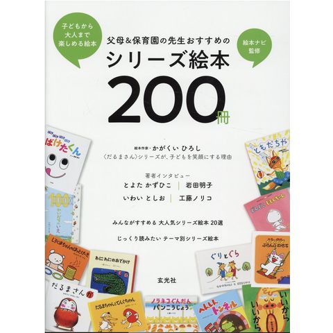 日本最大級の絵本ポータルサイト・絵本ナビの監修による、おすすめの〈シリーズ絵本〉を紹介する1冊。実際に絵本を購入し、楽しんでいる絵本ナビのユーザーや保育園の先生にアンケートを実施。およそ300名の回答の中から「本当に良い」シリーズ絵本を厳選し、子育てにまつわるエピソードやコメントと共に紹介します。まずは【みんながすすめる 大人気シリーズ絵本20選】として、ランキングで上位だった20シリーズを特集。〈だるまさん〉シリーズでおなじみの絵本作家/故・かがくいひろしさんを振り返るインタビューのほか、〈ももんちゃん〉シリーズのとよたかずひこさん、〈ばけたくん〉シリーズの岩田明子さん、〈100かいだてのいえ〉シリーズのいわいとしおさん、〈ノラネコぐんだん〉シリーズの工藤ノリコさんの著者インタビューなどを掲載しています。 また【じっくり読みたい テーマ別シリーズ絵本】では、「大笑いシリーズ絵本」「冒険シリーズ絵本」「食べ物シリーズ絵本」「ロングセラーシリーズ絵本」「考えるシリーズ絵本」「乗り物シリーズ絵本」「お仕事シリーズ絵本」「赤ちゃん向けシリーズ絵本」など、声の多かったシリーズ絵本をジャンルごとに紹介。そのほか、絵本ナビの磯崎編集長がセレクトしたシリーズ絵本やおすすめの書店など、見逃せない内容が満載です。