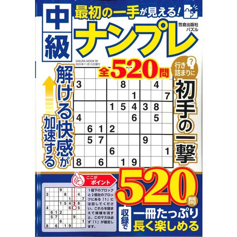 全520問を収録した、中級者向けナンバープレース(ナンプレ)専門のパズル雑誌。