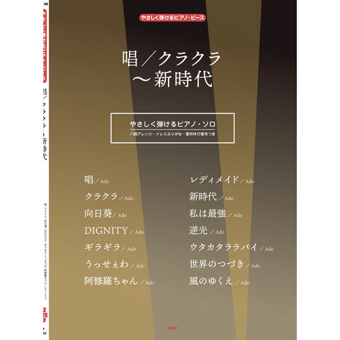 TVアニメ『SPY×FAMILY』Season2のオープニング主題歌「クラクラ」やUSJのCMソング「唱」など、 話題の人気曲を、音名ふりがな&要所指番号付きの弾きやすいピアノ・ソロで収載しました。