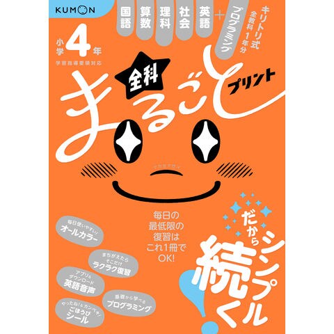 4年生は、国語、算数、理科、社会、英語、プログラミングを収録。
