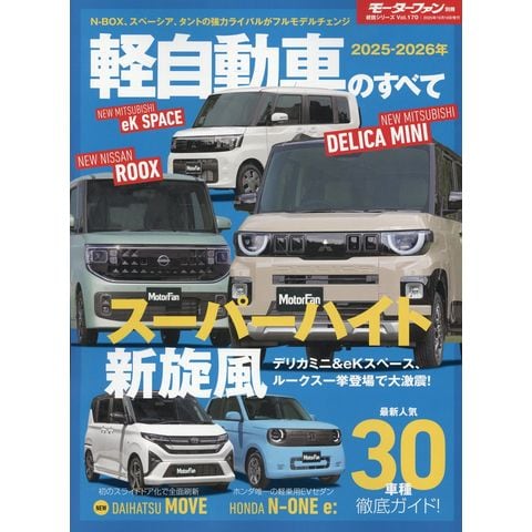 大人気のスーパーハイトクラスを始め、SUVやセダン、バン、キャブオーバー&トラックまで、あらゆる軽自動車を車種ごとに定型フォーマットで詳しく解説。内外装の豊富な写真やインプレッション、バリエーション展開などを、各車横並びで比較検討できる情報量の多い保存版の1冊です。軽自動車の購入を検討している方はもちろん、最新情報をあらゆる角度から知りたいあなたにおすすめします。