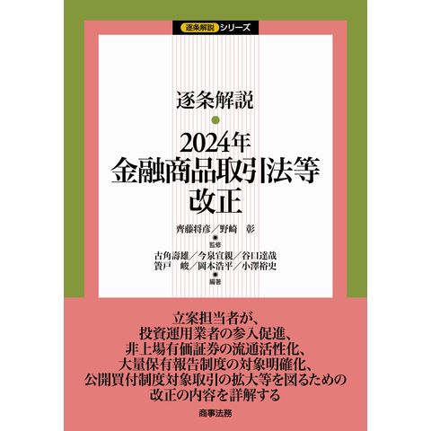 逐条解説2024年金融商品取引法等改正 /齊藤将彦 野崎彰 古角壽雄