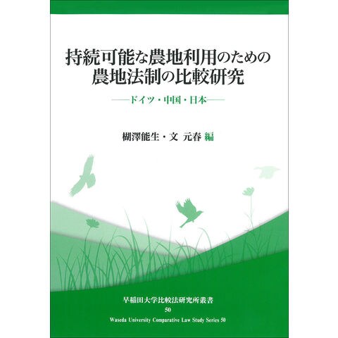 持続可能社会に適合的な農地利用・所有の在り方とその法制度化を、比較法を通じて考察しようとする論文集。早稲田大学比較法研究所叢書43『持続可能社会への転換と法・法律学』、同叢書45『持続可能な世界への法』の続編。