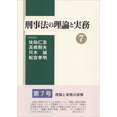 「理論と実務の交錯―拘禁刑の創設をめぐる諸問題―」において、実務家と研究者の諸論稿を掲載するなど、理論刑法学と判例・実務との架橋を目指す。研究者および実務家対象の最新かつ高度な専門書。
