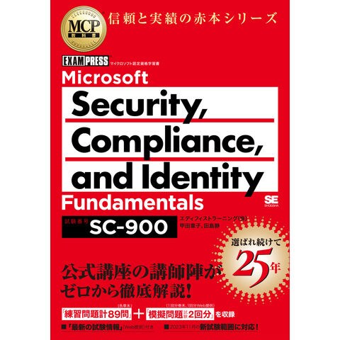 Microsoft認定試験「Microsoft Security, Compliance, and Identity Fundamentals」(試験番号:SC-900)の本邦初の対策書です。最新版の試験に対応しています。実績ある講師陣による丁寧かつ分かりやすい解説に加え、各章末には豊富な練習問題(89問)、巻末・Web提供合わせて2回分の模擬問題を収録。この1冊だけで合格する力が身につきます。