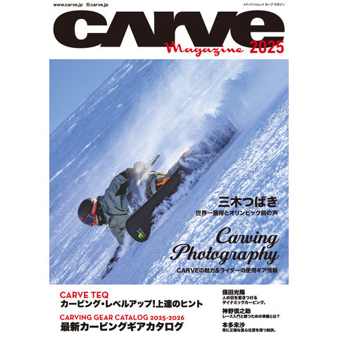 「三木つばき。世界一獲得とオリンピック前の声」、「CARVING PHOTOGRAPHY~トップライダー~ライダーの使用ギア情報」、「CARVE TEQ~カービング上達のヒント」、「CARVE ALPINE LESSON~神野慎之助。レース入門と勝つための準備とは?」、「NEXT STEP of CARVING~保田光陽。人の目を惹きつけるダイナミックカービング」、「Winner’s Tech~本多美沙の強さの秘密」、「最新カーヴィングギアカタログ2025-2026」、「PSAプロファイル~AL & SX プロライダーファイル」、「JSBAデモンストレーターファイル」、「2023-2024大会レポート&リザルト」、他。