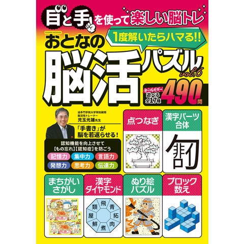 物忘れや判断力低下など脳の衰えを感じ始めている方に向けて、脳の活性化を促す、おとなの脳活パズル第6弾!