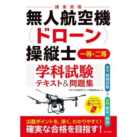 試験は「無人航空機の飛行の安全に関する教則」に沿って出題されます。本書は最新の教則に合わせた章立てで学習しやすく、各章末には理解度確認のためのミニテストを掲載しています。赤シート対応で暗記もばっちり!巻末には一等・二等それぞれの模擬試験を掲載。本試験形式の問題数になっていますので、試験時間を守って解いてみてください。別冊解答・解説にはさらに、問題を踏まえて覚えておきたいポイントも丁寧にまとめています。
