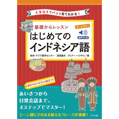 はじめてインドネシア語を学習する人に向けた入門書。4ステップの構成で文法のルールから、基本のあいさつ、定番フレーズ、場面別で使えるフレーズなど、初学者が知っておきたい基本がマスターできます。