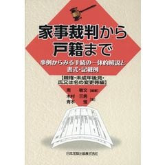 法律専門家・戸籍担当者に贈る唯一無二の書家事事件に関する裁判が確定し、身分関係が変動する場合、その結果を戸籍に反映するためにはどのような手続が必要か?戸籍訂正申請等に添付される裁判の謄本を得るためには、どのような申立てが必要か?<はしがき(抄)> …戸籍の書物や裁判に関する書物を紐解いても、問題の事案がどの類型に当てはまるのかが分からなければ、正確な情報を掴むことは困難である。本書は、その橋渡しを目指したものである。…家事事件に関する裁判(調停、審判、人事訴訟)の場合、その裁判の類型ごとに戸籍訂正等の手続が決まっていて、これを一体的に説明することが可能である。例えば、法的に同じような効果を持つ嫡出子否認の裁判と親子関係不存在確認の裁判では、その確定による戸籍の手続が異なり、前者の場合は、出生届による出生事項をそのままにし、それを前提に、嫡出子否認に関する戸籍の記載をするが、後者の場合は、出生届が誤りであったことを前提とする戸籍訂正を行う。このようなことを知った上で裁判を提起すると、結論を見据えた裁判をすることが可能となる。 ●総論では「家事事件手続等の概要」「戸籍制度の概要」「現行戸籍手続上の予備知識」を概説。 ●家事事件を体系的に解説し具体的事例を用いてその手続を示す。 ●各事例は「審判・調停申立書・訴状」「戸籍届書・申請書」「戸籍記載例」等の書式を用いて解説。 ●家事裁判が確定した場合,その結果を戸籍へ反映させるための手続の仕方、裁判の謄本取得の申立ての仕方等,問題の事案がどの類型に当てはまるかがわかる。