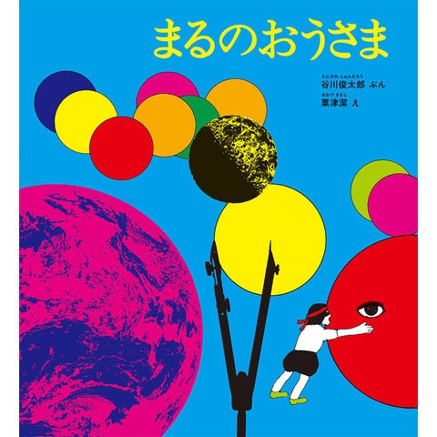 詩人・谷川俊太郎の言葉と、グラフィックデザイナー・粟津潔の絵による絵本。まるの王さまと自称するお皿が、シンバルが、タイヤが、ボールベアリングが次々と登場し、次第にまるは真珠やオレンジ、運動会の玉ころがしの玉、トンビの輪になり……。「まる」という存在を機軸に奇想天外に展開していく鮮やかな絵は独特の魅力を放ち、そこに詩人の言葉がテンポよく寄り添います。「かがくのとも」1971年2月号の限定復刊。