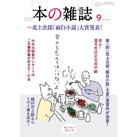 本誌の創刊者であり、日本のエンターテインメント書評を確立した北上次郎氏の急逝から二年半。氏の業績を顕彰し、氏の遺志を継ぐべく創設された〈北上次郎「面白小説」大賞〉の第一回受賞作がいよいよ決定! というわけで、本の雑誌9月号の特集は「北上次郎「面白小説」大賞発表!」。芥川・直木賞がともに該当作なしと発表された夏、北上次郎氏が「いやはや、すごいぞ、ぶっとぶぞ」と驚嘆するような作品がはたして出てきたのか。選考委員会実況中継に選考委員各氏の選評、そして大賞作家の受賞のことばで受賞作が明らかになるのだ!