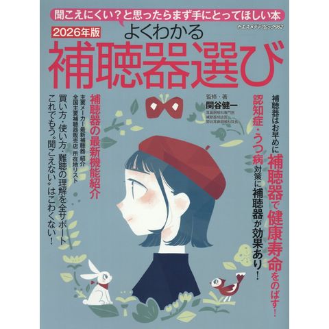 現役の耳鼻科医・補聴器相談医が執筆した補聴器選びの入門書です。補聴器の性能を理解したり、使い方を学ぶための参考書として2008年の初刊行以来多くの方にご愛読いただいています。2026年版の巻頭TOPICSでは「AI補聴器」「Auracast対応補聴器」「転倒検知機能付き補聴器」など聞こえはもちろんのこと、さらにその先へと進化した補聴器について、メーカー各社に取材しています。また、表紙はよりよい聞こえが健康的な生活につながることを意識したイラストを起用し、優しく手に取りやすいデザインになっています。