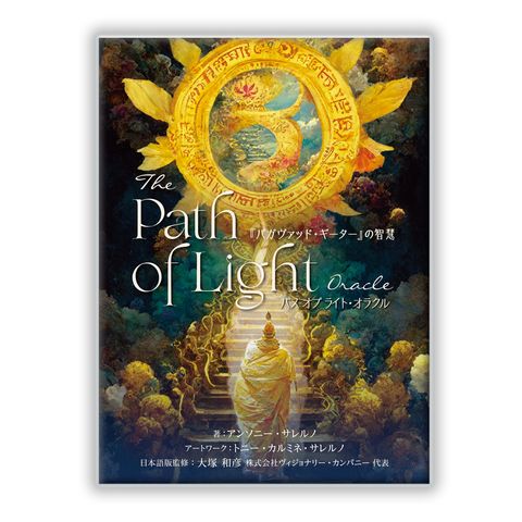 『パス オブ ライト・オラクル』は、その叡智を現代的な感性と直感の世界に融合させた、まったく新しいオラクルカードセットです。本作では、『ギーター』に息づくカルマ・ヨーガ(行為のヨーガ)、バクティ・ヨーガ(愛と献身のヨーガ)、そしてジュニャーナ・ヨーガ(智慧のヨーガ)のエッセンスを、カードの言葉とアートワークを通して体現しています。
