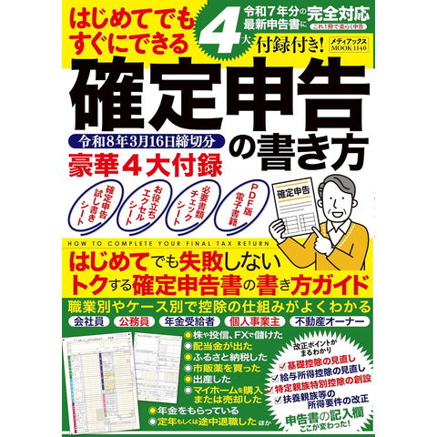 令和7年分確定申告のやり方をわかりやすく解説するムックです。一定の副収入のある会社員、年金暮らしの人、個人事業主など、自分に確定申告が必要かどうかの調べ方から各種書式の記入方法まで、丁寧に解説します。
