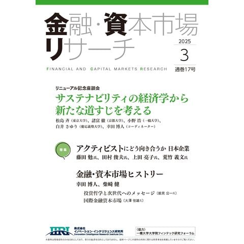 金融・資本市場の構造を理解するためのオピニオン誌。第17号は、本誌リニューアル記念座談会として「サステナビリティの経済学から新たな道すじを考える」をはじめ、「金融・資本市場ヒストリー」の第1シリーズ「バブル崩壊後の金融危機と或る金融人の投資哲学」の最終回を収録。特集テーマは「アクティビストにどう向き合うか 日本企業」。この他、「リレーエッセイ」「潮流 市場環境」、「連載企画」などで構成している。