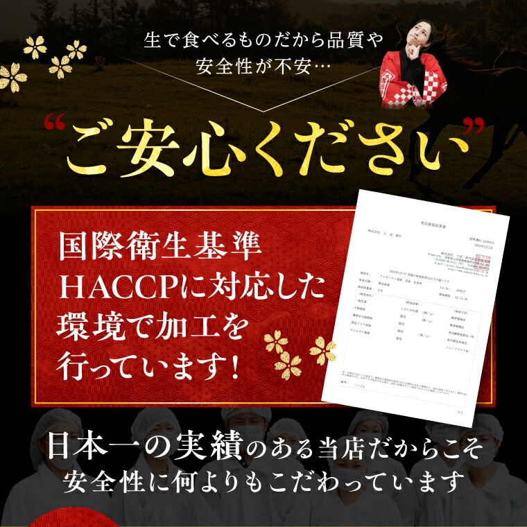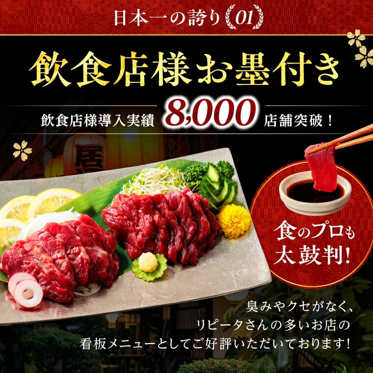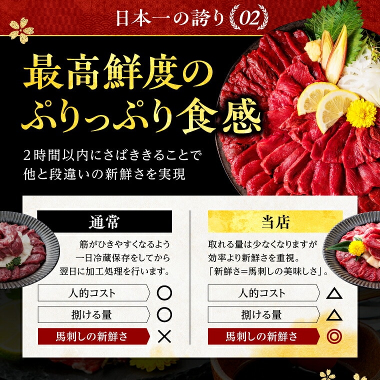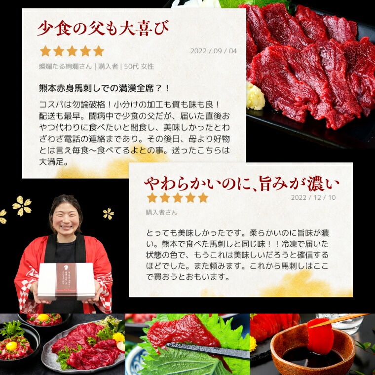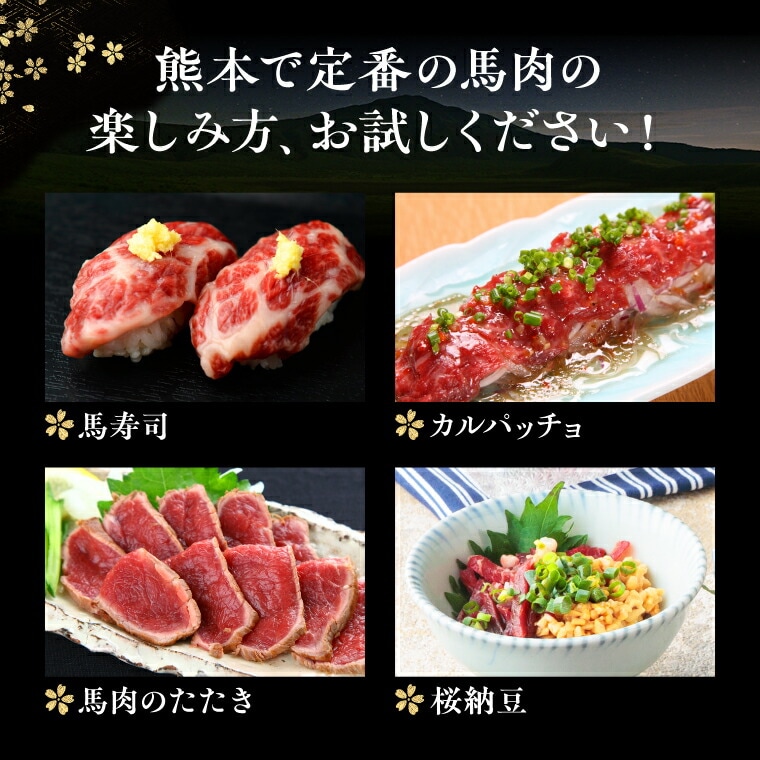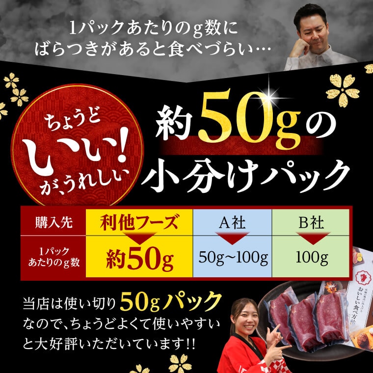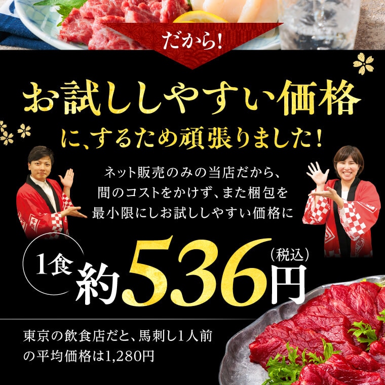 赤身馬刺し(1パックあたり約50g) 合計g数以上でお届けいたします。