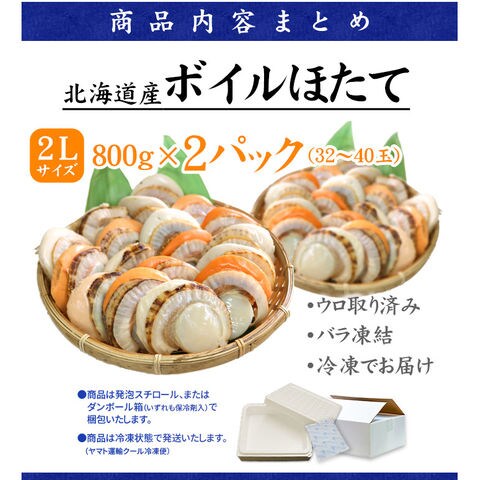 北海道産 ボイルほたて 2Lサイズ 1.6kg(800g×2袋) 32~40玉 送料無料 [[ボイルホタテ-2p]