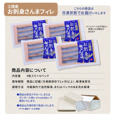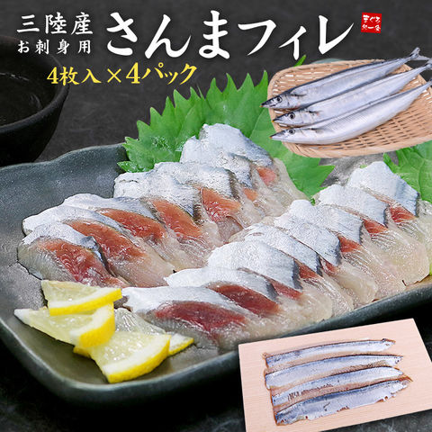 \年末ご予約受付中/ 三陸産 お刺身用さんまフィレ4枚入り×4パック サンマ8尾分 秋刀魚 送料無料 [[さんま刺身フィーレ-4p]