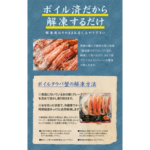 カット済み ボイルタラバガニ1kg ハーフポーション 送料無料 [[タラバ蟹ハーフポーション1kg]