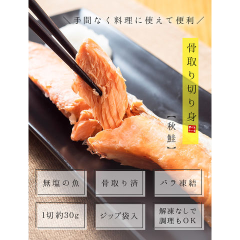 秋鮭 骨取り切り身 30g×20切 加熱用 無塩 バラ凍結 チャック袋 送料無料 [[サケ骨取り切り身]