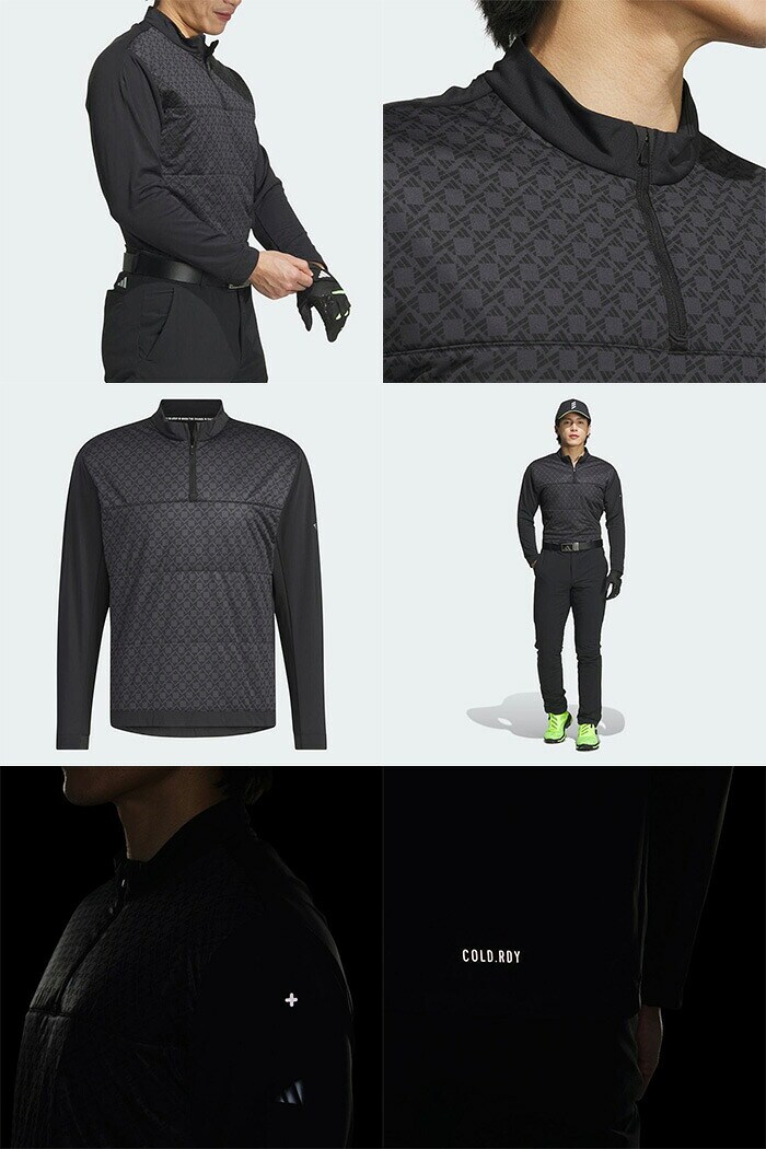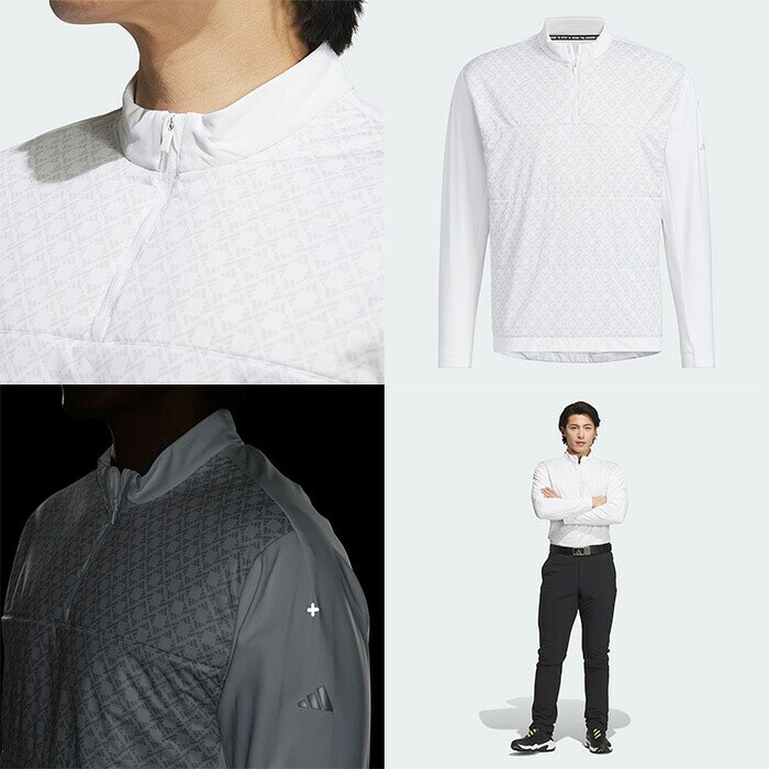 アディダス ゴルフ 長袖 ハーフジップ モックシャツ Frost Guard 保温 キルト コンビネーション メンズ JSB95 IM7297/IM7298 トップス ゴルフウェア 2024年秋冬