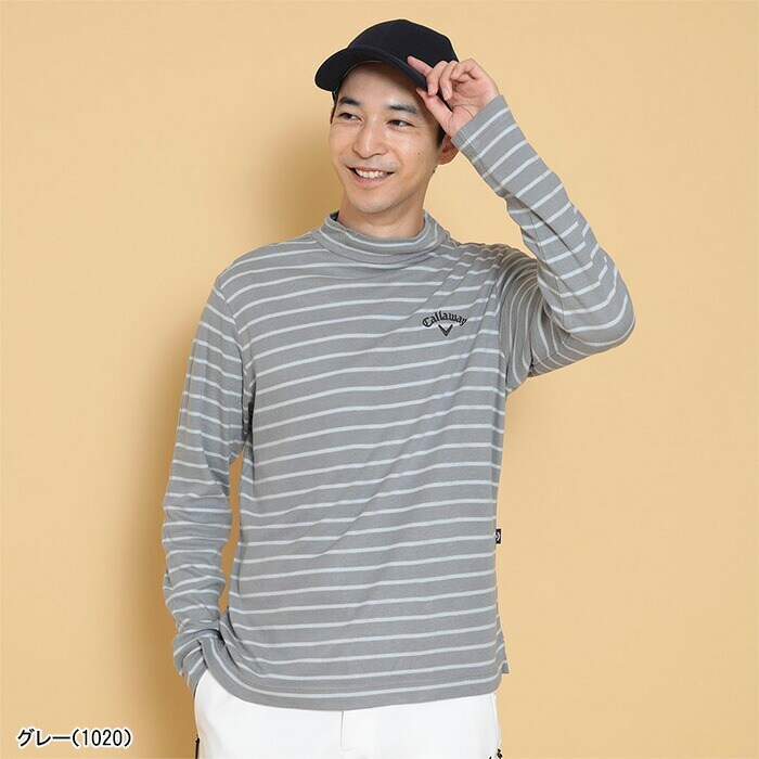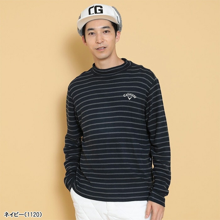 キャロウェイ ゴルフ 長袖 モックネックシャツ ボーダー表起毛スムース メンズ C24233109 ゴルフウェア トップス 2024年秋冬モデル Callaway GOLF アパレル