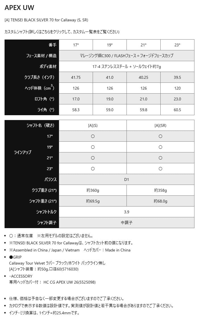 キャロウェイ APEX UW ユーティリティ TENSEI Black Silver 70 for Callaway カーボンシャフト 2025年モデル