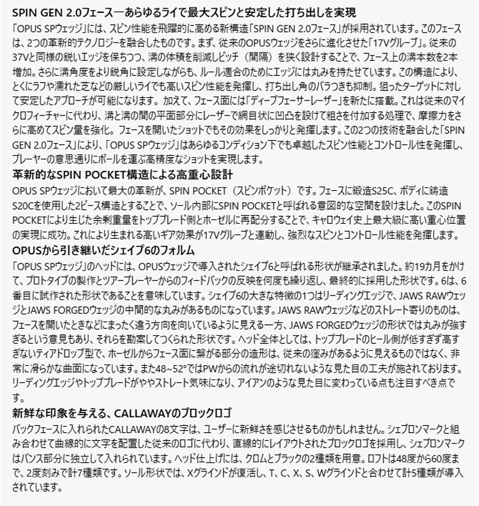キャロウェイ OPUS SPウェッジ クロム N.S.PRO 950neo スチールシャフト 2025年モデル