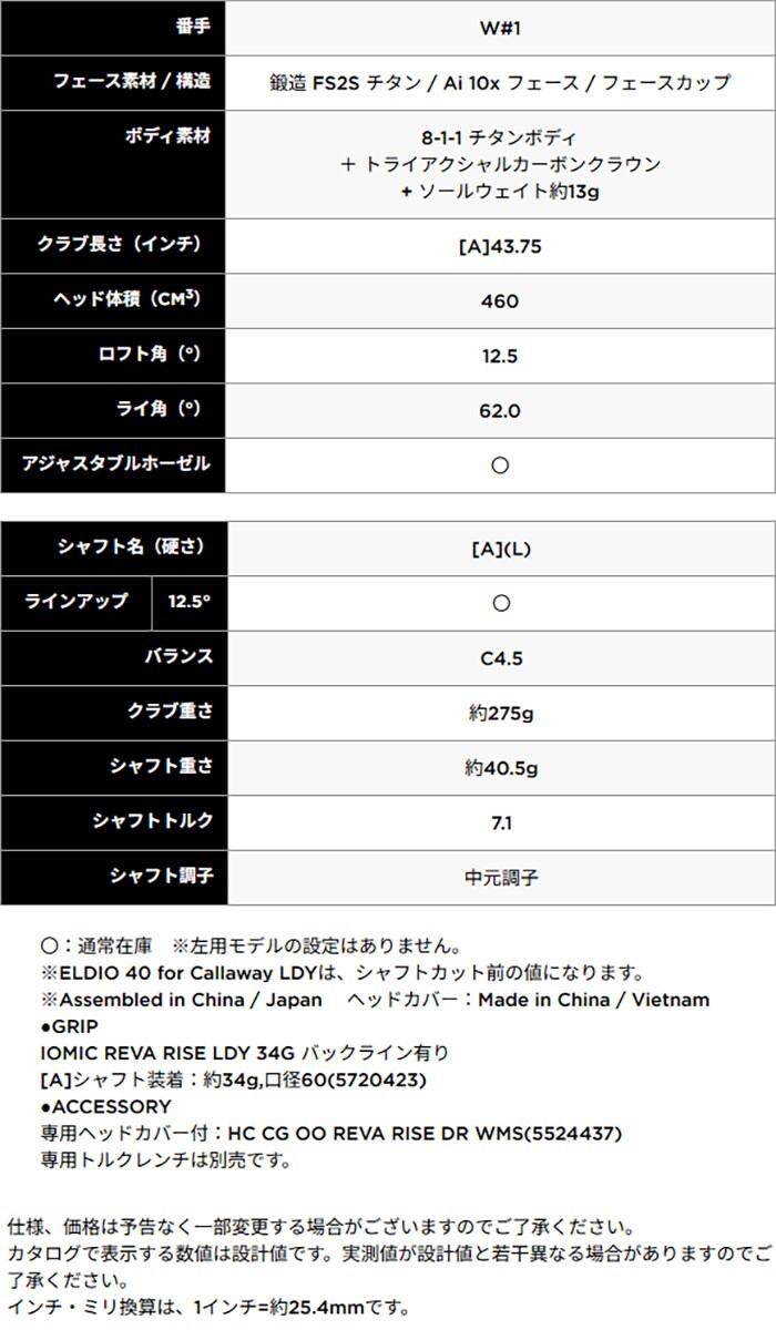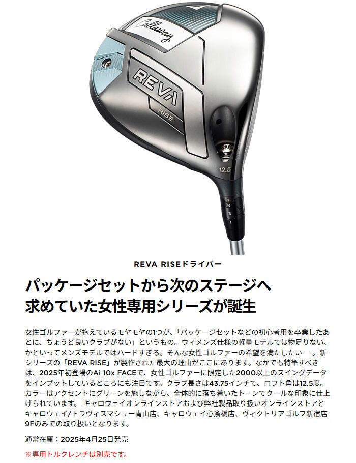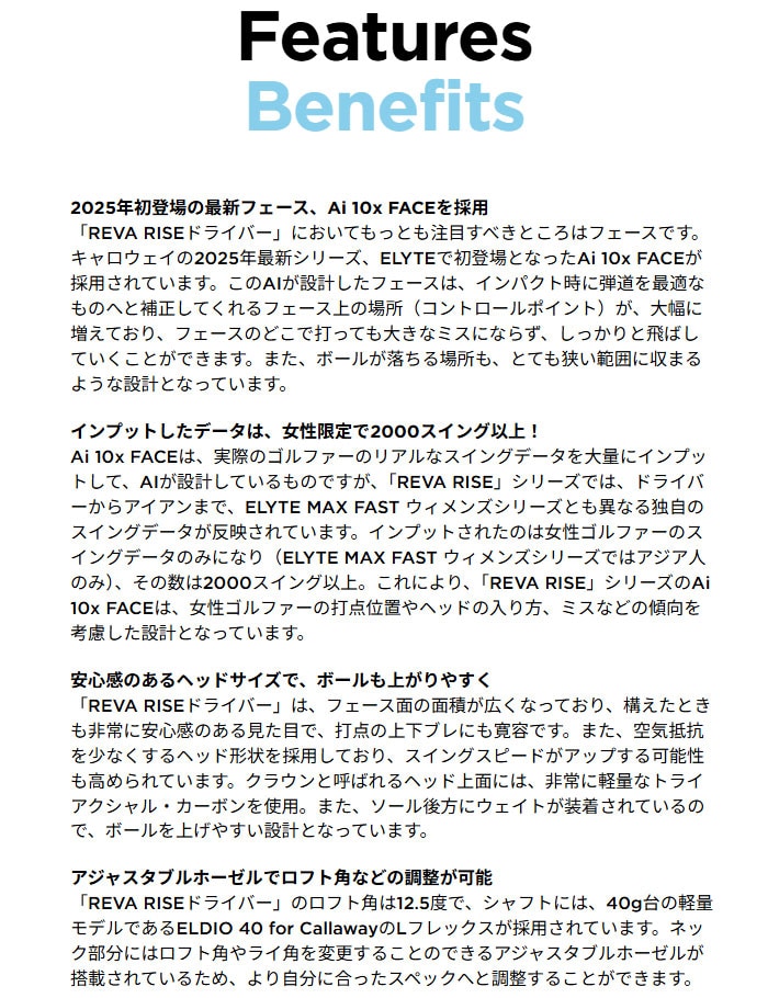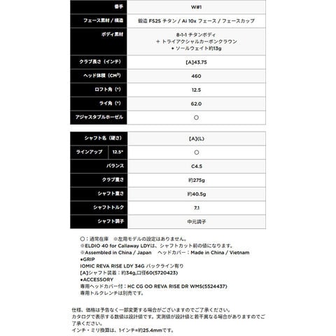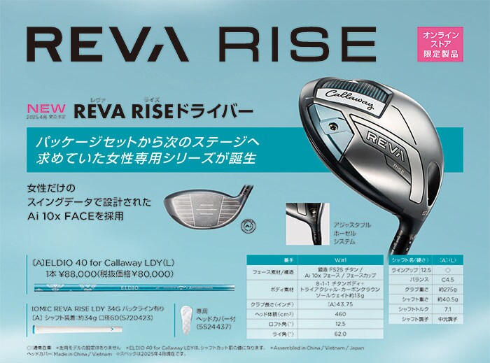 レディース キャロウェイ REVA RISE WOMEN'S ドライバー ELDIO 40 for Callawayシャフト 2025年モデル 日本仕様 Callaway レヴァ ライズ