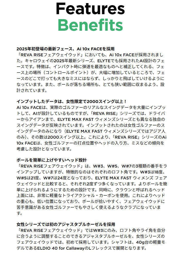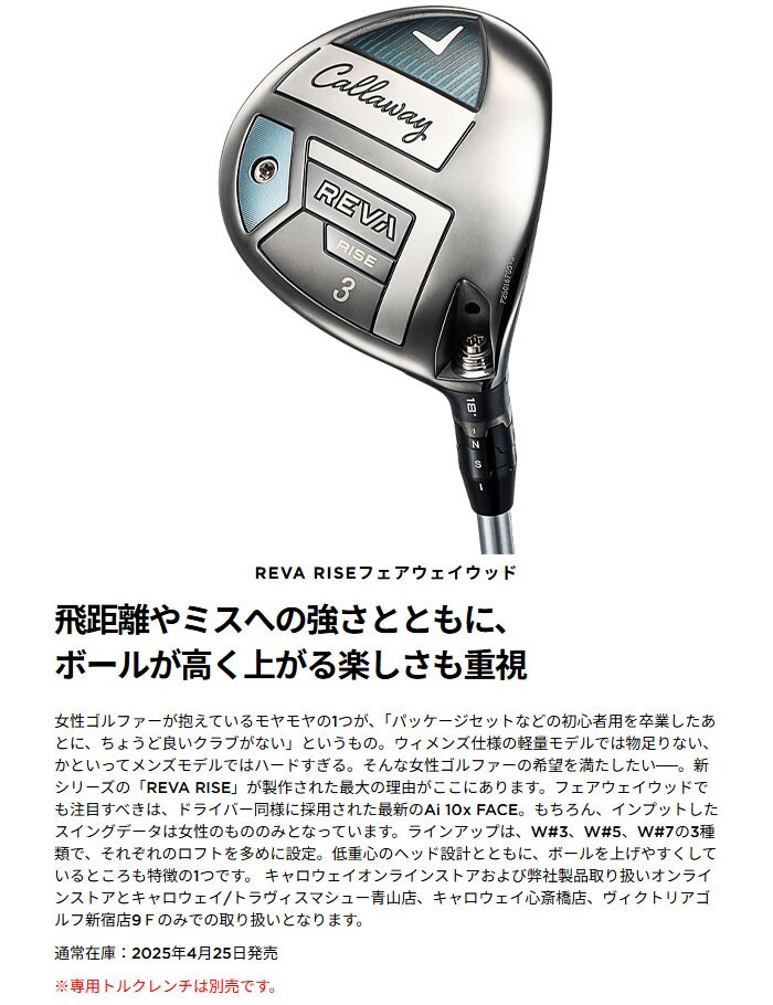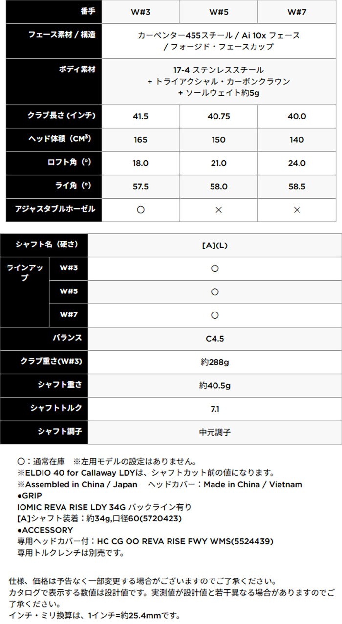 【レディース】キャロウェイ REVA RISE WOMEN'S フェアウェイウッド ELDIO 40 for Callawayシャフト 2025年モデル