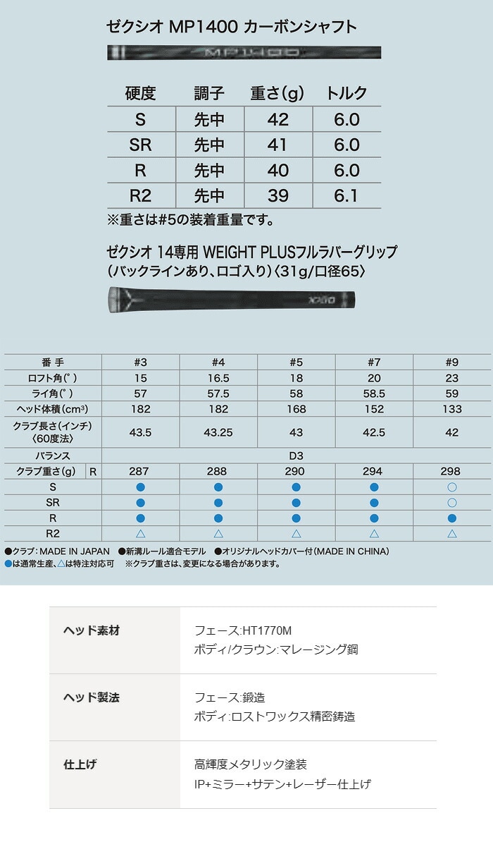 ダンロップ ゼクシオ 14 フェアウェイウッド ゼクシオ MP1400 カーボンシャフト 2025年モデル