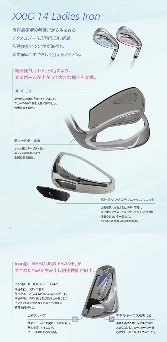 【レディース】ダンロップ ゼクシオ 14 アイアン 5本セット(ブルー/ホワイト) ゼクシオ MP1400L カーボンシャフト
