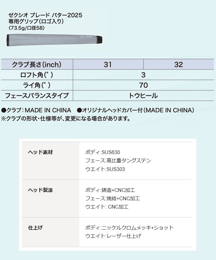 【レディース】ダンロップ ゼクシオ ブレード パター オリジナルスチールシャフト 2025年モデル