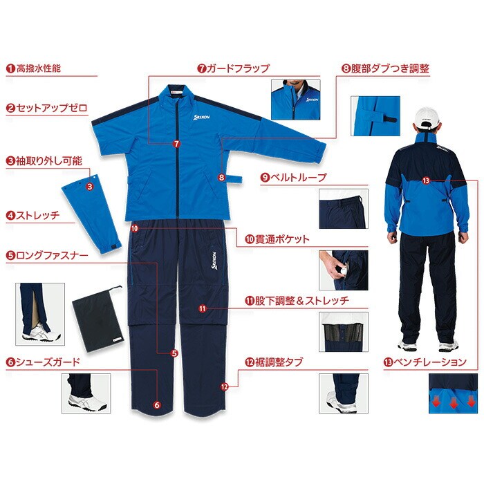 ダンロップ スリクソン レインウェア 上下セット ブルゾン パンツ セットアップ MOVE MASTER3 メンズ SMR5001 DUNLOP SRIXON ムーブマスター3 ゴルフウェア 2WAY