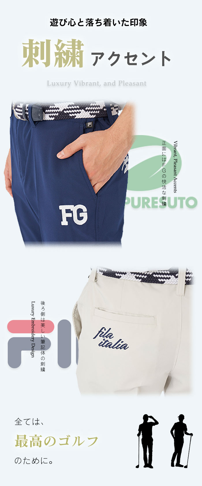 フィラ ゴルフ ロングパンツ プレストオリジナルデザイン 743326i 接触冷感 刺繍 ストレッチ UVカット