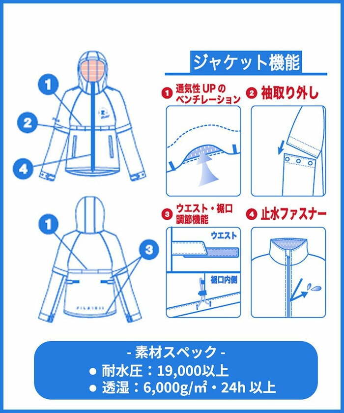 フィラ ゴルフ レインウェア 上下セット ブルゾン パンツ メンズ 743-990 レインスーツ カッパ 長袖 半袖 ゴルフウェア 2023年秋冬モデル FILA GOLF 秋冬ウェア 743990