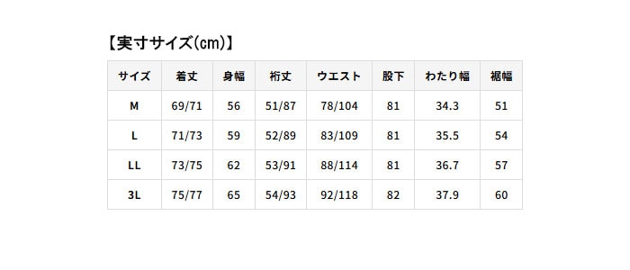 ウエスト紐つき。 裾口はマジックテープでしぼり調節が可能。