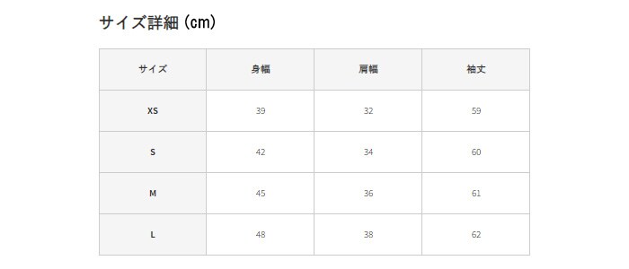 | ※実寸サイズの為、誤差のある場合がございます。(一部、平置きサイズでの採寸となります) | ||||||||||||
