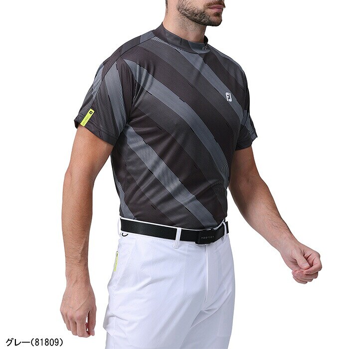 フットジョイ 半袖 モックネックシャツ レジメンタルストライププリント メンズ FJ-S24-S06 トップス ゴルフウェア 2024年春夏モデル FOOTJOY 81807/81808/81809