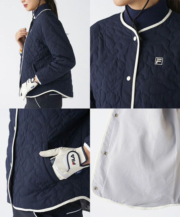 【レディース】フィラ ゴルフ 長袖 フラワーキルトジャケット 795-210 スナップボタン開き アウター ブルゾン ゴルフウェア 2025年秋冬モデル FILA GOLF 秋冬ウェア 795210