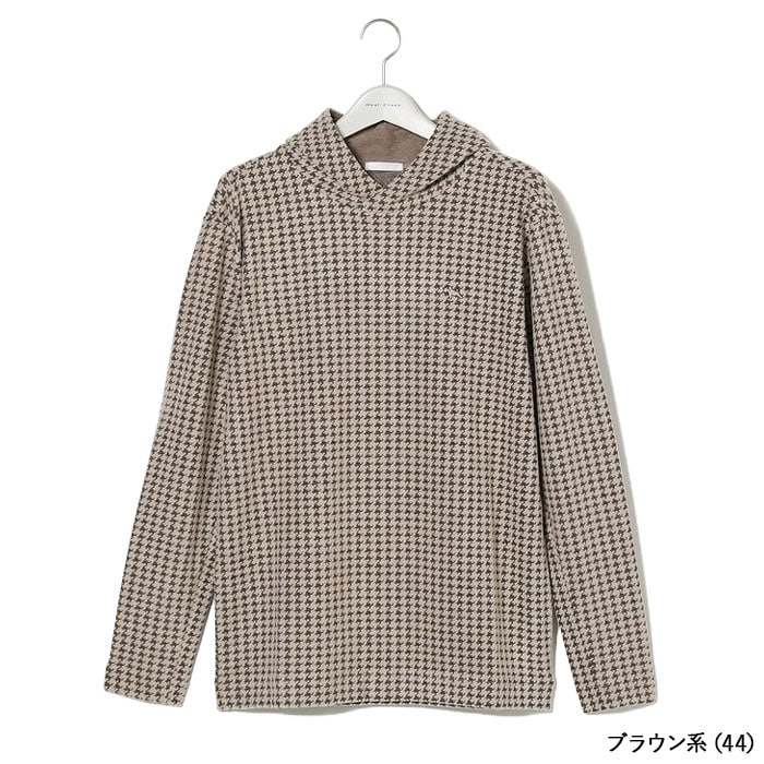 ヒールクリーク ウォーム JQ 千鳥柄 長袖 フードシャツ メンズ 001-29111 ゴルフウェア 吸湿発熱 2023年秋冬モデル Heal Creek 00129111