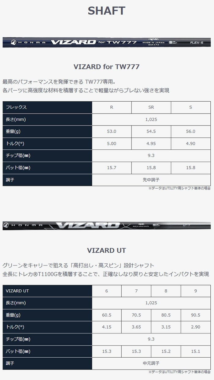 本間ゴルフ ツアーワールド TW777 ユーティリティ VIZARD カーボンシャフト 2025年モデル[HONMA TOUR WORLD]